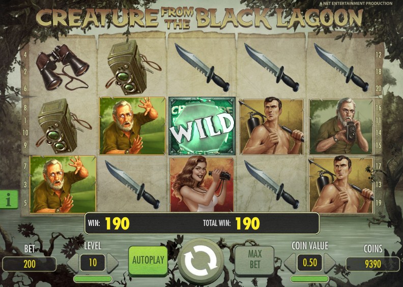 Фильм и слот рассказывают историю о научной поездке вниз по Амазонке с участием Кей Лоуренс, доктора Дэвида Рида, доктора Карла Майя и Лукаса. Поездка приводит к открытию странного зверя — существа из Черной лагуны. Великолепный релиз NetEnt может похвастаться винтажными барабанами и иконками, стараясь сохранить ощущение оригинальности фильма. Это не только визуальные эффекты, которые выгодно подчеркивают тему, но и жуткий, загадочный саундтрек.