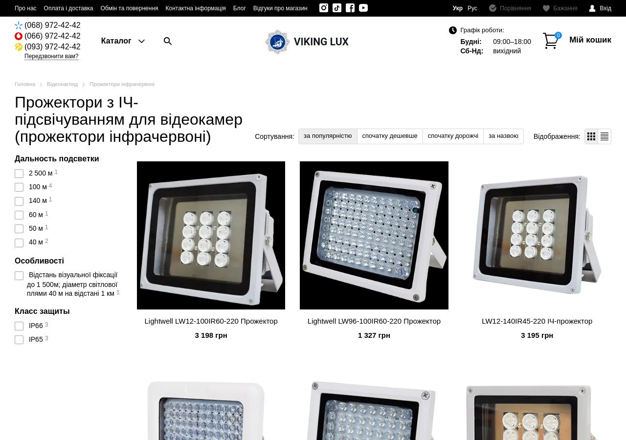 Прожектори з ІЧ-підсвічуванням працюють на основі випромінювання інфрачервоного світла, яке не видно для людини, але може бути зафіксоване спеціальними камерами. Це робить їх незамінними для забезпечення безпеки вночі. Завдяки цьому, системи відеоспостереження з можливістю інфрачервоного підсвічування забезпечують контроль і охорону об’єктів у будь-який час доби. Прожектори також варіюються за потужністю, кутом охоплення та дальністю дії, що дозволяє вибрати оптимальний варіант для будь-яких умов.