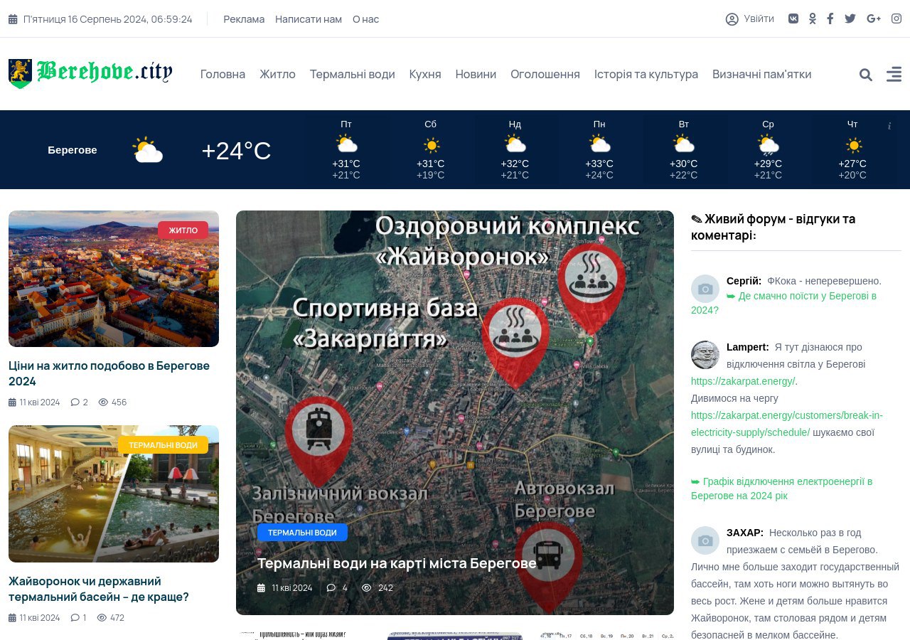 Берегове є невеликим містечком, де збереглася автентична атмосфера європейського провінційного курорту. Вузькі вулиці, історичні будівлі та гостинні місцеві жителі створюють особливий затишок. Основною причиною, через яку сюди їдуть відпочивальники, є термальні джерела, багаті на мінерали, які мають цілющі властивості.